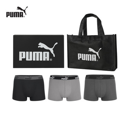PUMA彪马男士平角内裤中腰纯棉透气3条四角裤红色本命年高端礼盒