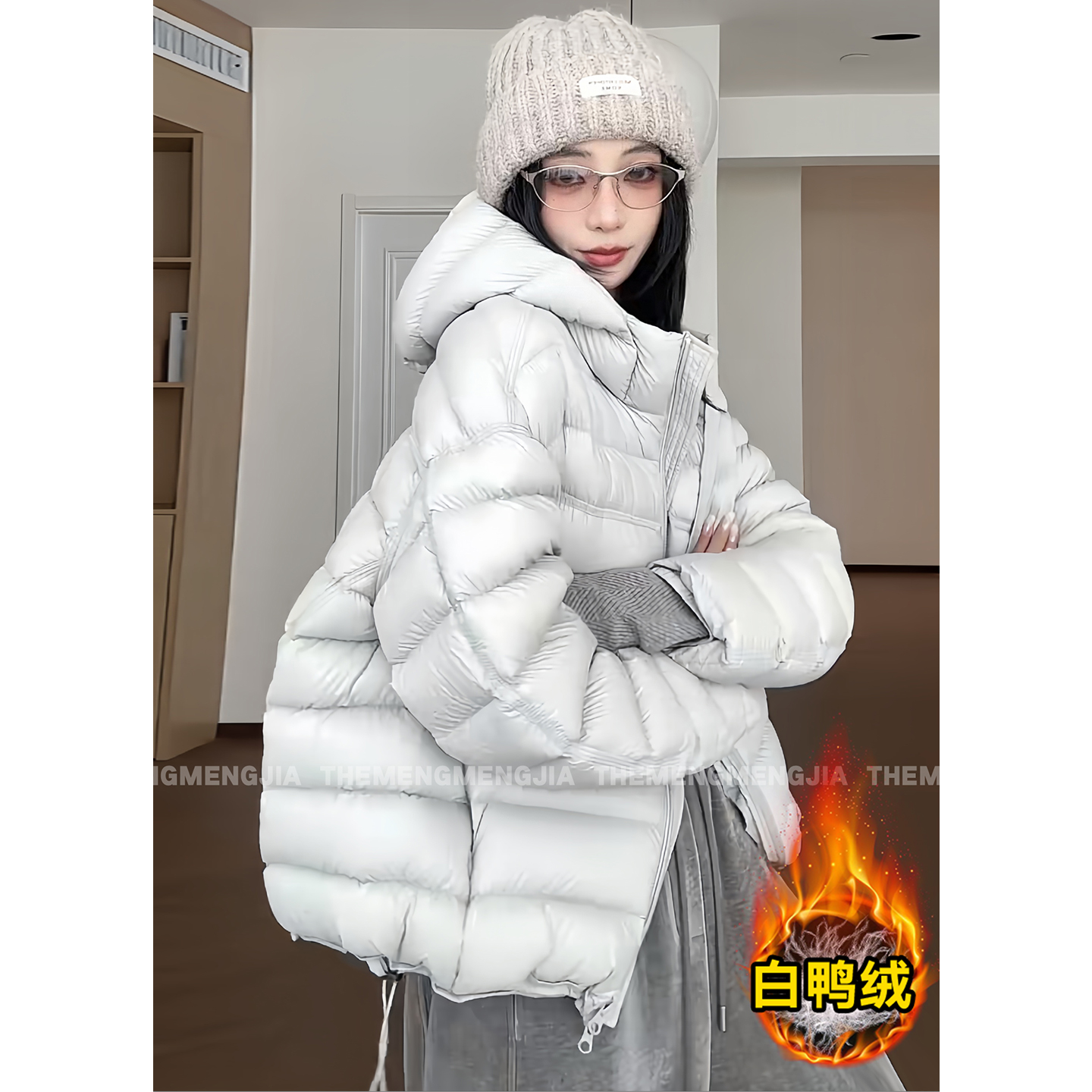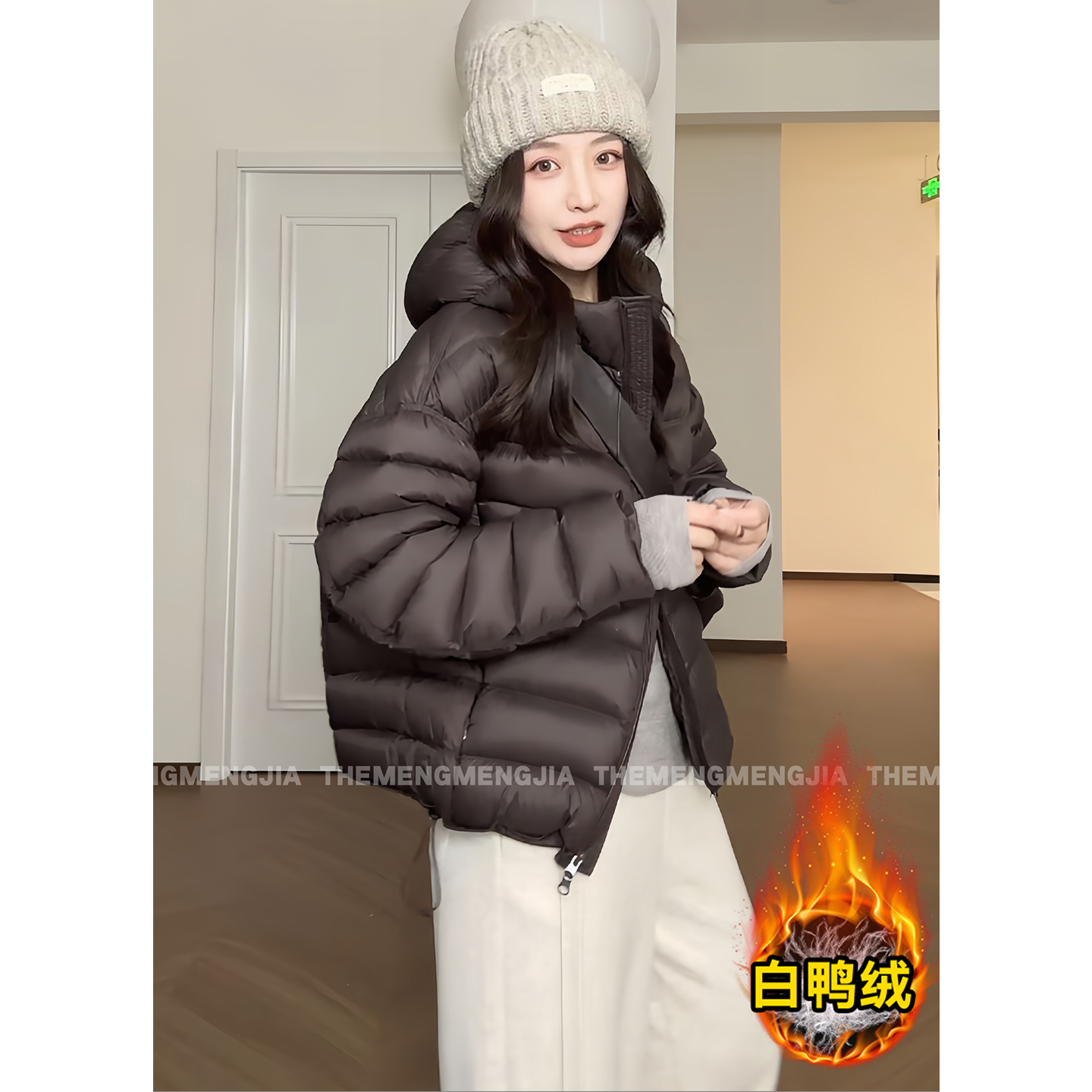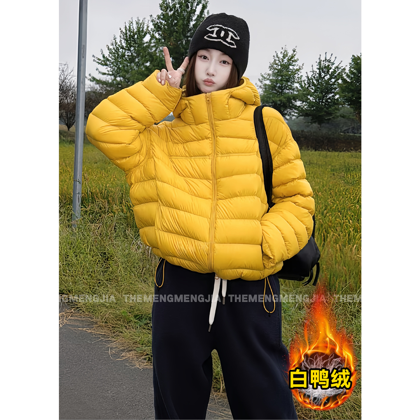 韩版泡芙排骨羽绒服女短款2025冬季新款连帽白鸭绒保暖显瘦外套潮