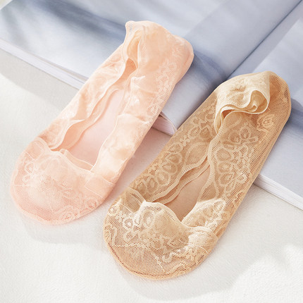 蕾丝隐形女袜纯棉硅胶防滑不掉跟