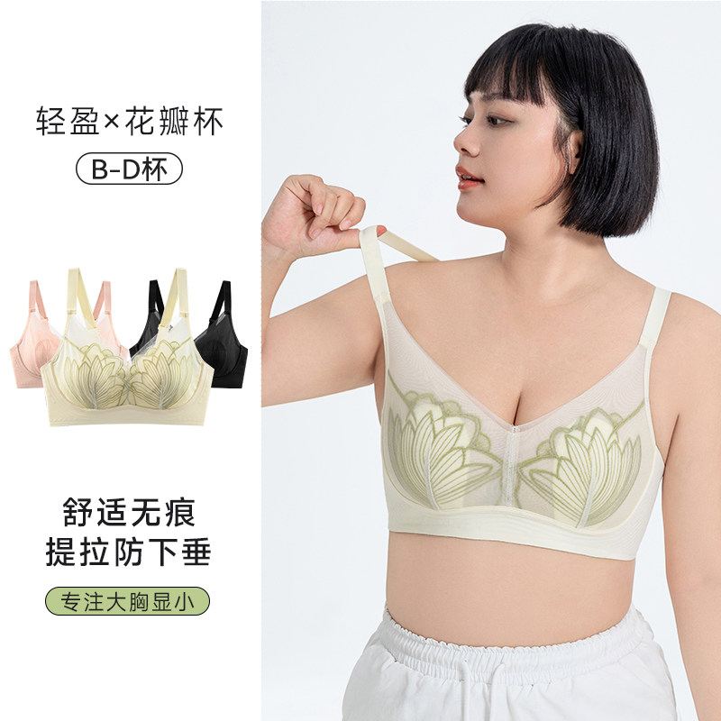 欧迪芬蕾丝内衣聚拢大胸显小上托防下垂收副乳夏季薄款无钢圈文胸