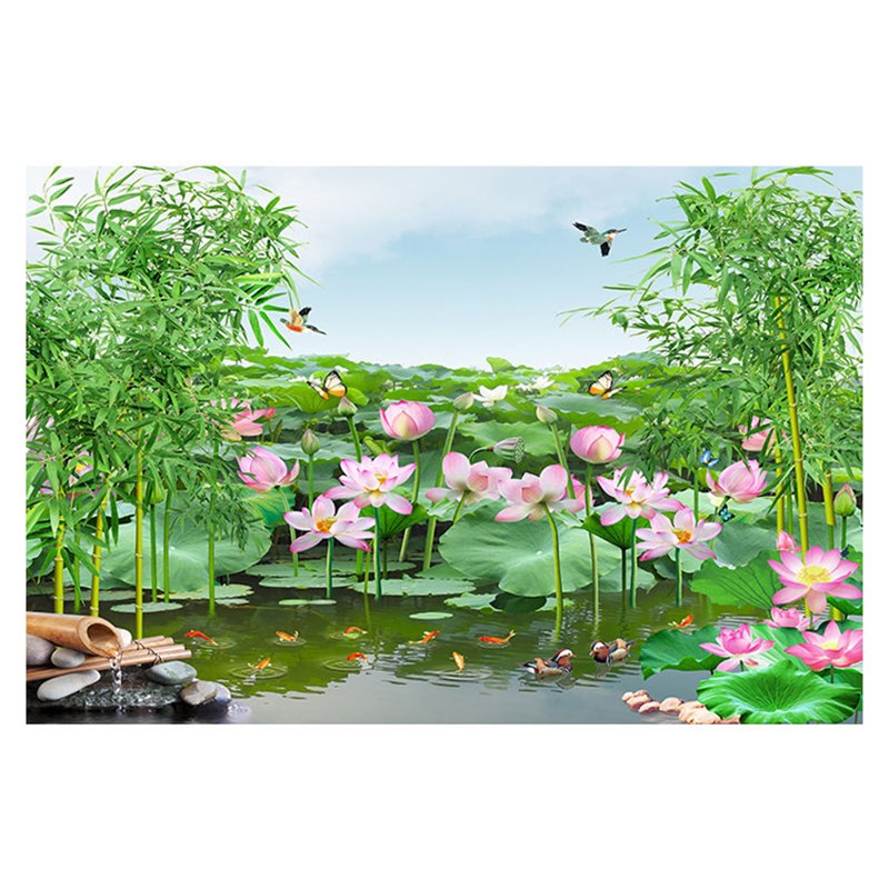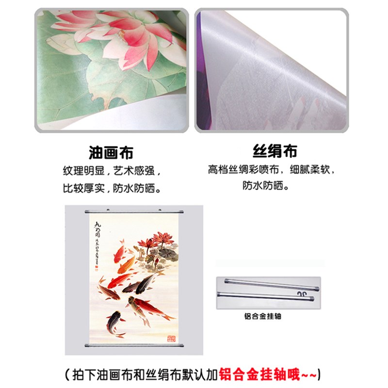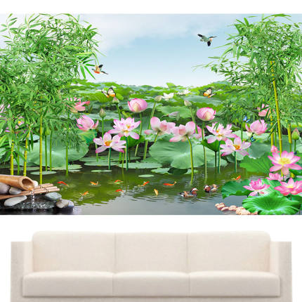 荷花池 莲花装饰画 竹报平安客厅电视沙发九鱼图山水风景墙贴画