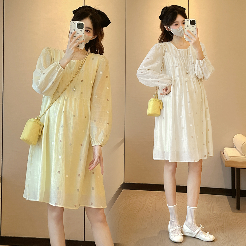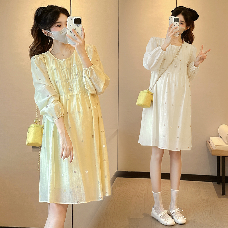 孕妇装秋装时尚休闲长袖碎花连衣裙小清新甜美减龄裙子春秋孕妇裙
