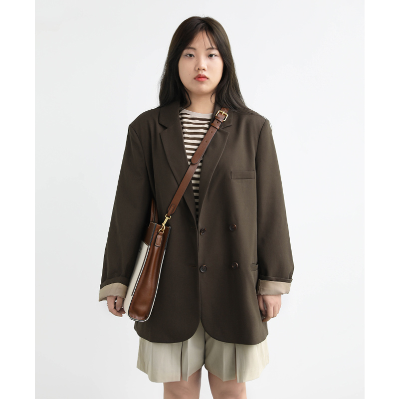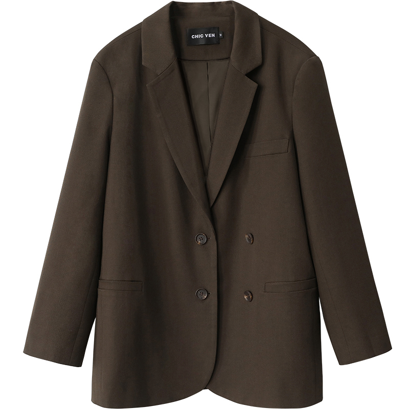CV大码女装 秋新款休闲高级感袖口卷边撞色长袖西装外套女小西服