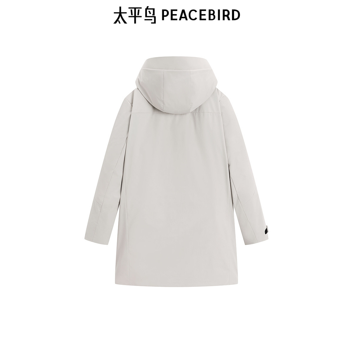 太平鸟男装 灰色羽绒服男中长款工装连帽冬季保暖潮流防寒服男