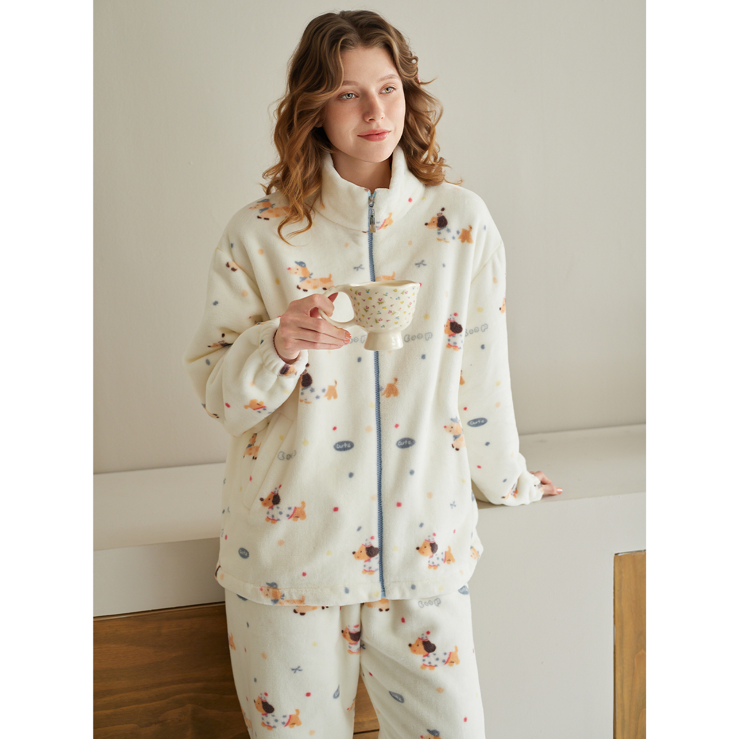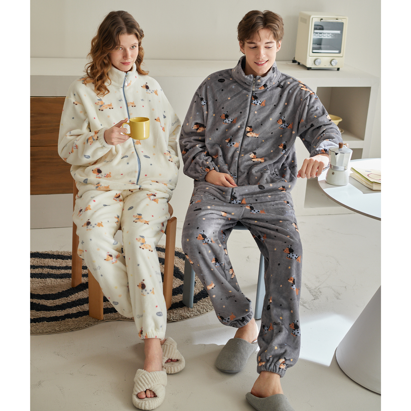 芬腾秋冬季珊瑚绒卡通款情侣睡衣