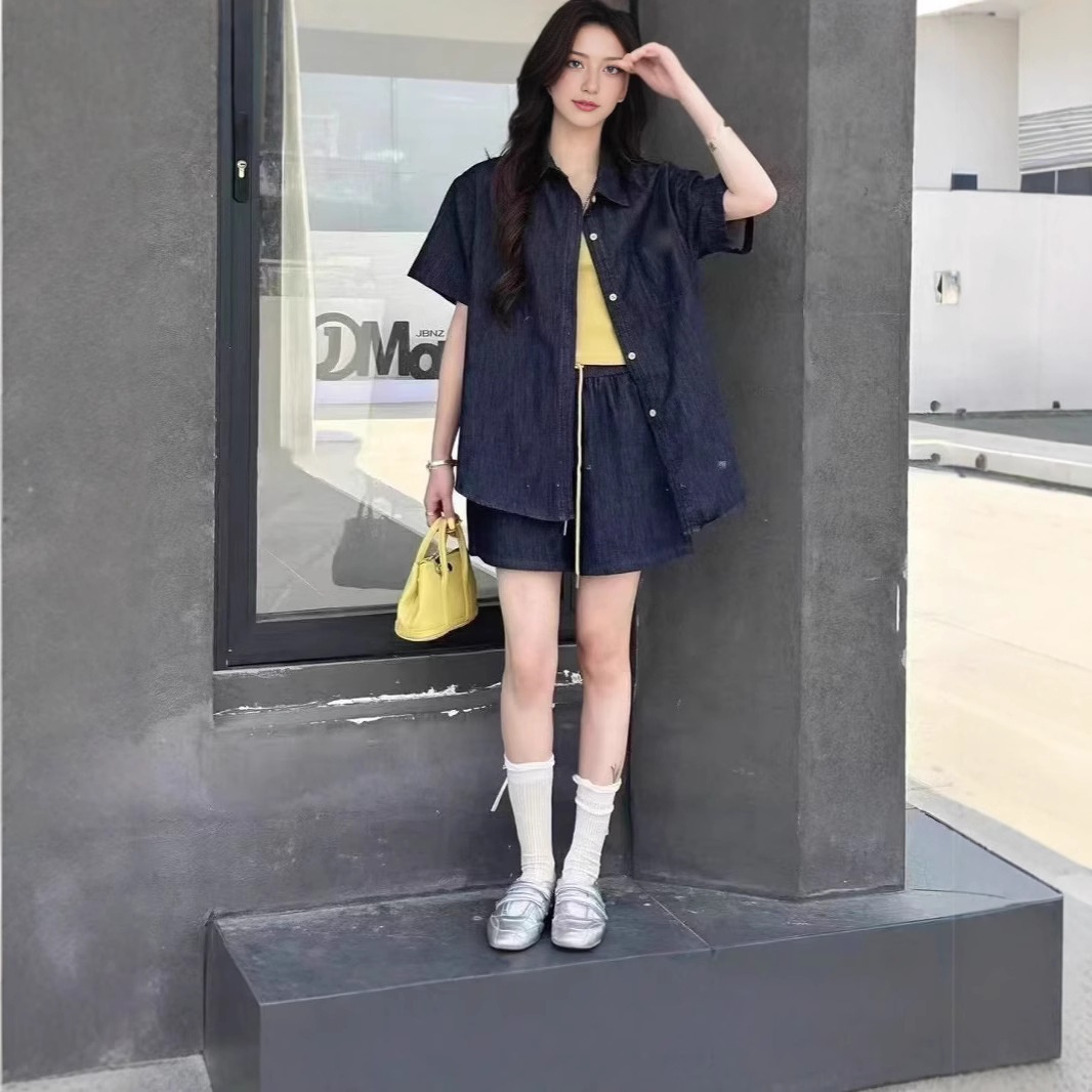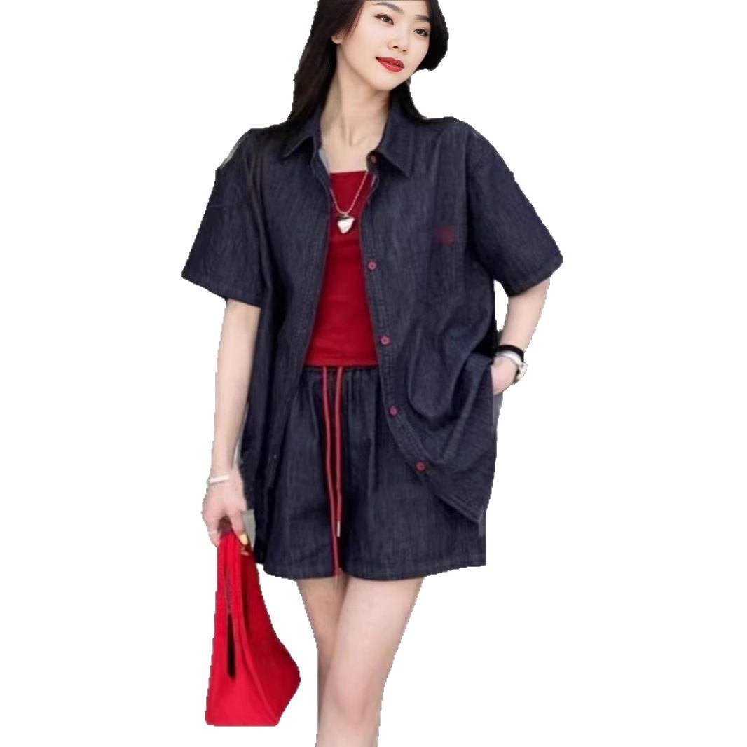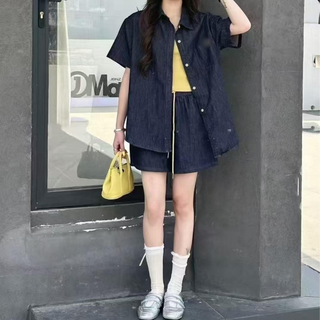 小个子牛仔短裤套装女夏季2025新款复古时尚洋气时髦薄款三件套