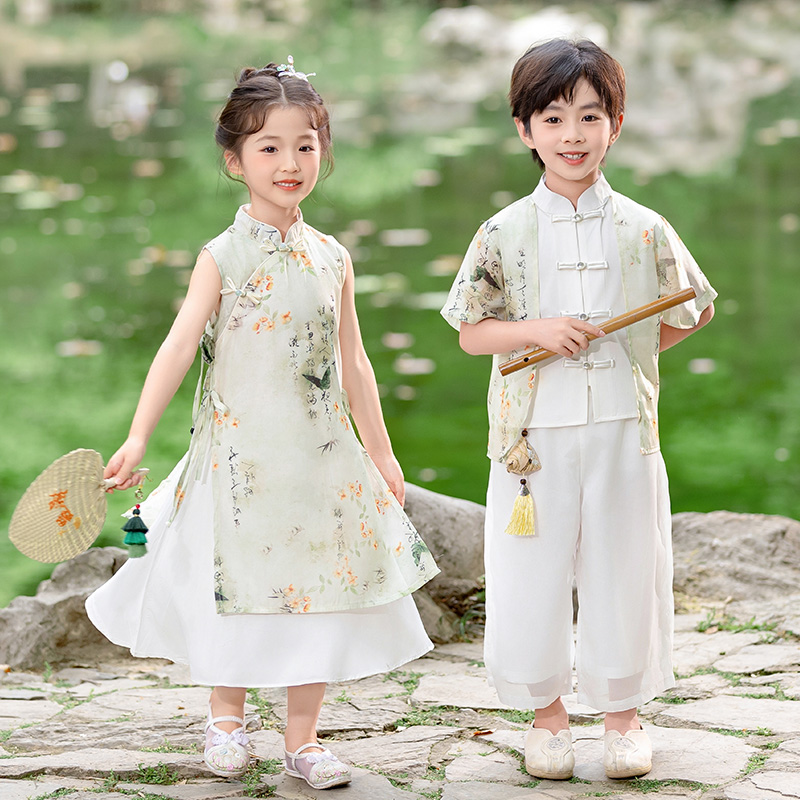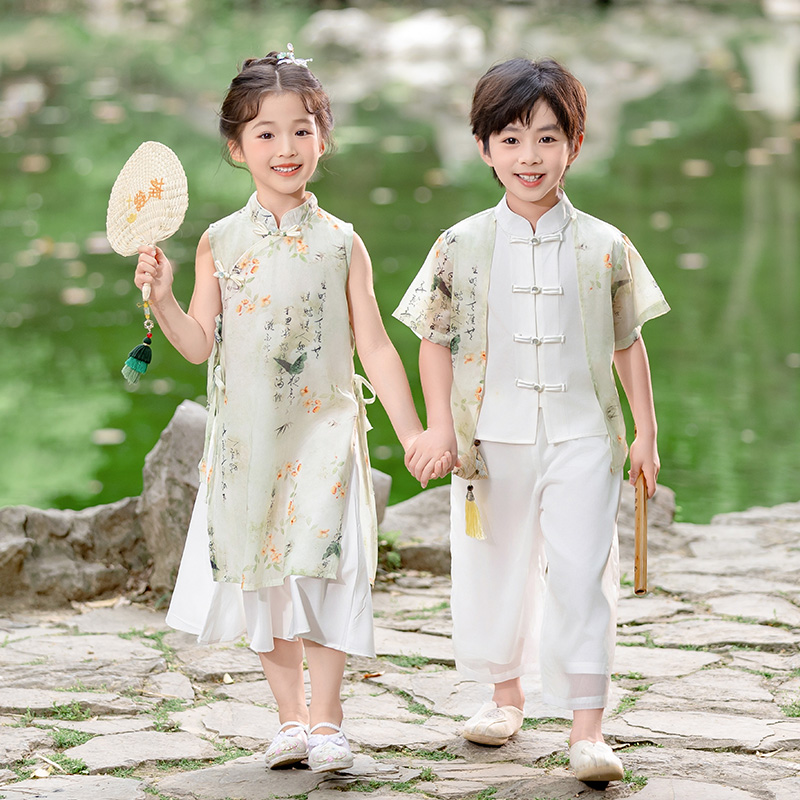 男女童汉服套装2025夏季新款儿童国风唐装古风女孩旗袍古装演出服