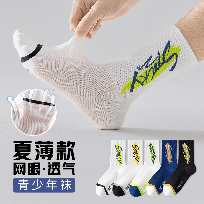 青少年袜子男夏季薄中筒袜纯棉透气网眼运动防臭7a抗菌男款篮球袜