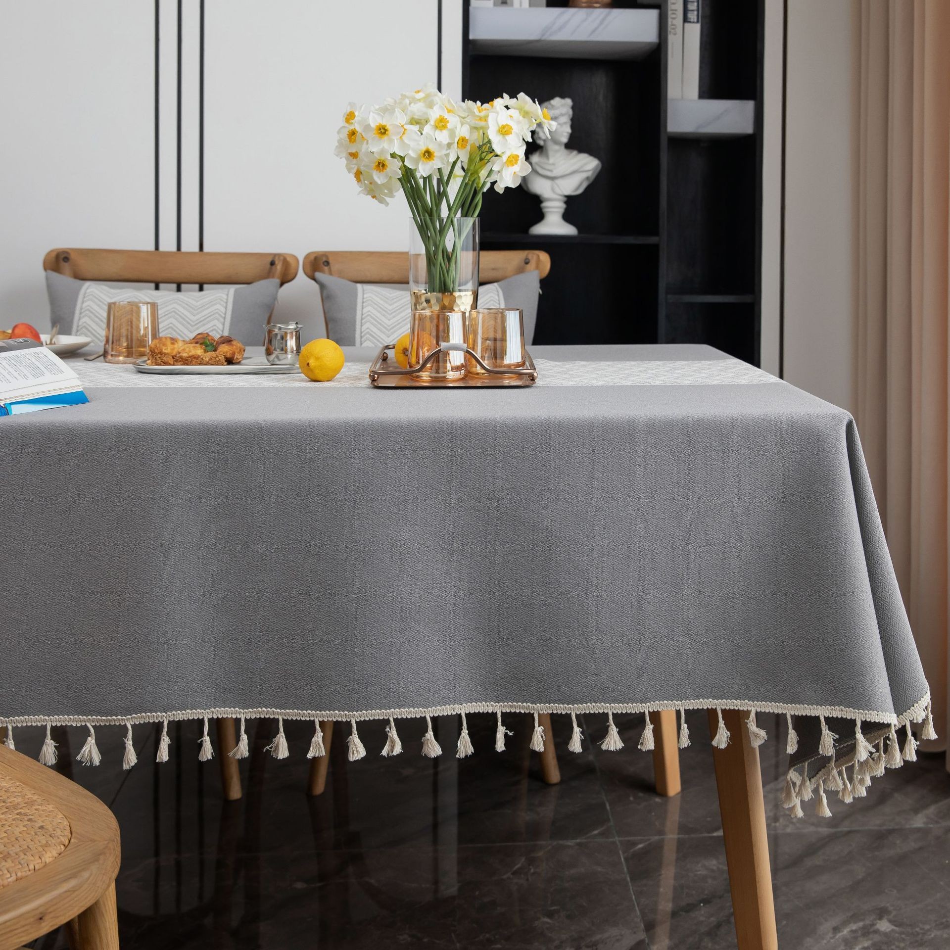 灰色美式仿棉麻水波提花桌布文艺餐桌布艺长方形家用台布复古定制