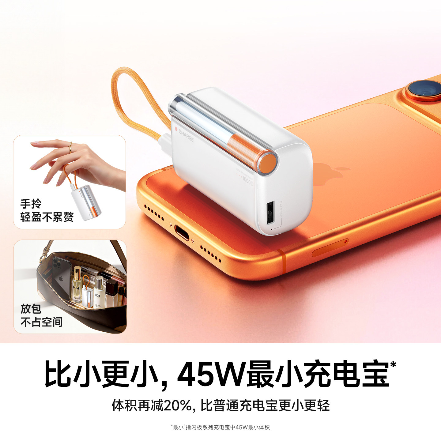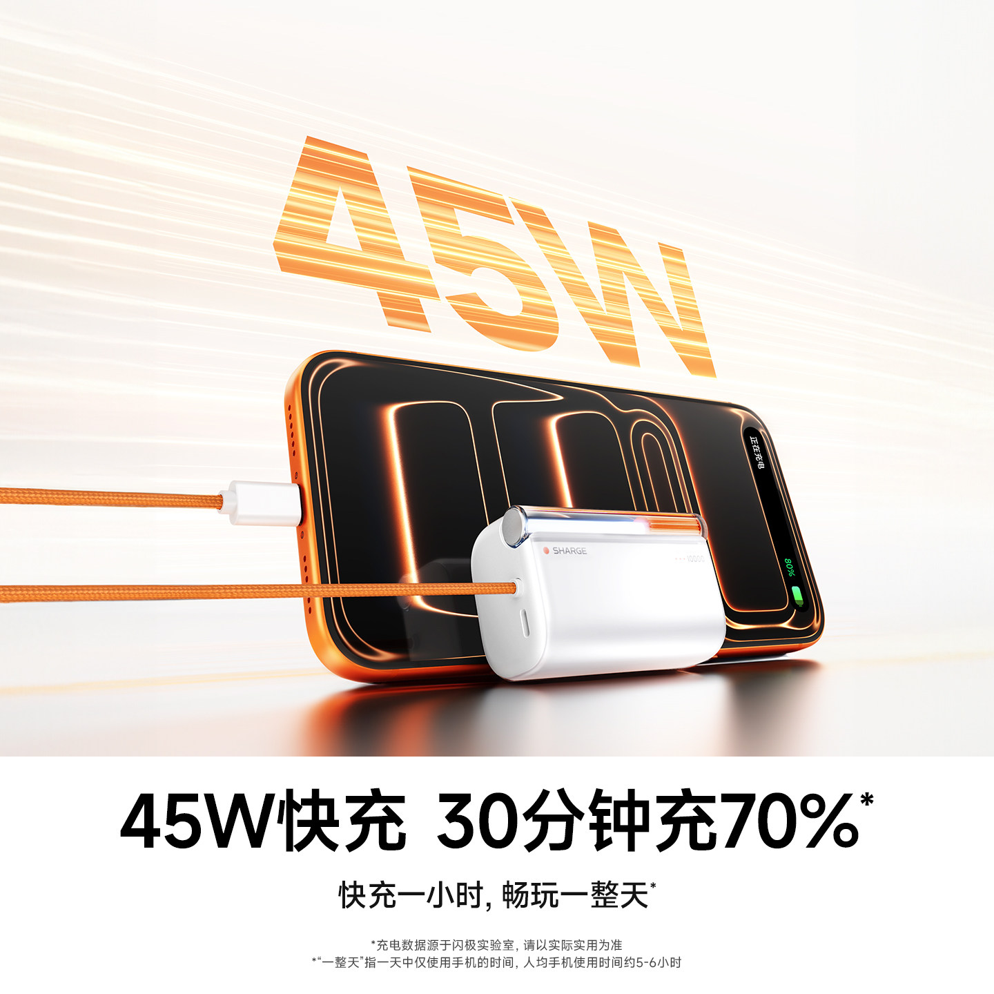 【国家3C认证】SHARGE闪极随行Pro充电宝2026新款mini自带线PD45W快充3C认证移动电源适用苹果17华为可上飞机