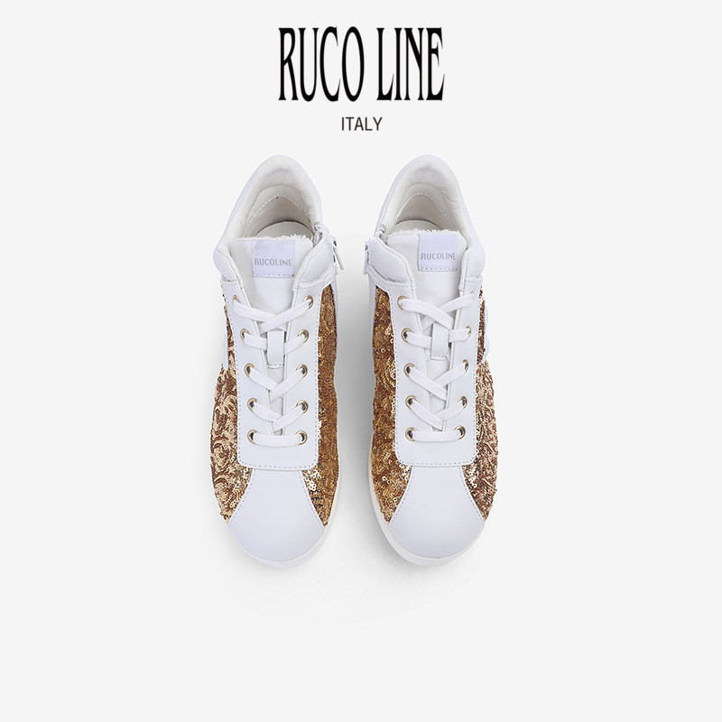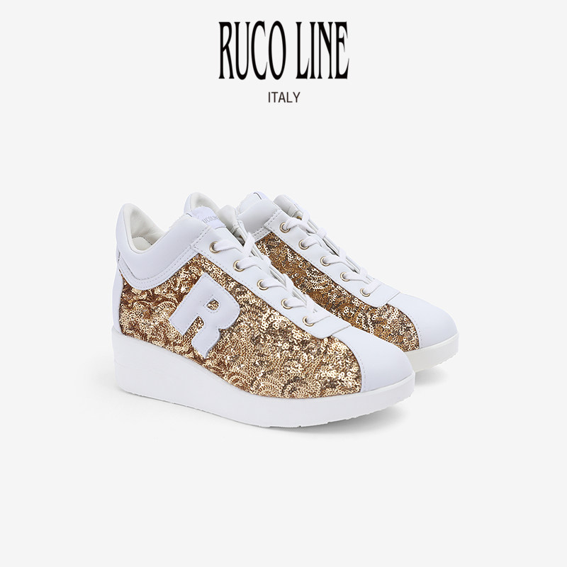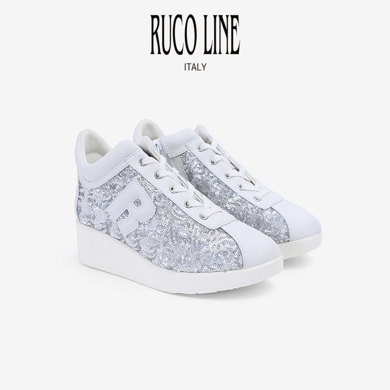 Ruco Line如卡莱商场同款休闲鞋女亮片5CM坡跟增高鞋细绒毛时尚鞋