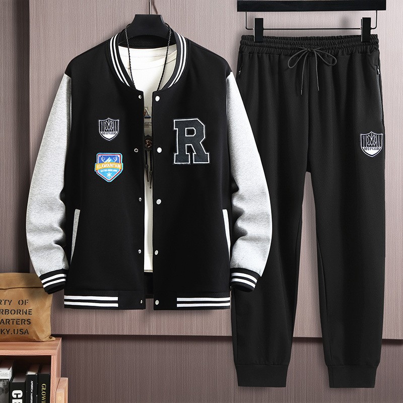 大码棒球服套装300斤加肥加大潮胖子男士秋冬季休闲加绒学生男装