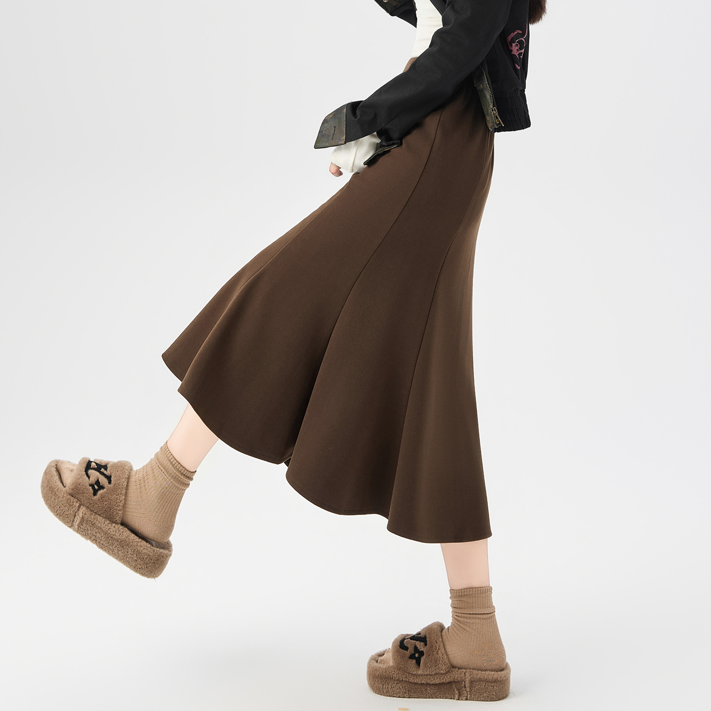 实拍 2025毛呢包臀半身裙女秋冬季新款高腰a字鱼尾裙小个子长