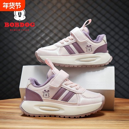 巴布豆女童棉鞋2025秋冬新款加绒保暖二棉阿甘鞋子皮面儿童运动鞋