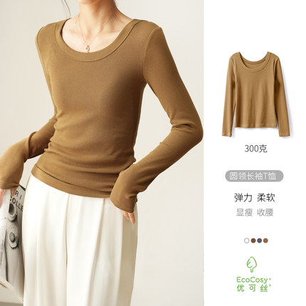 300克优可丝木纤维 女士大码圆领T恤 修身长袖打底衫山东网店女装