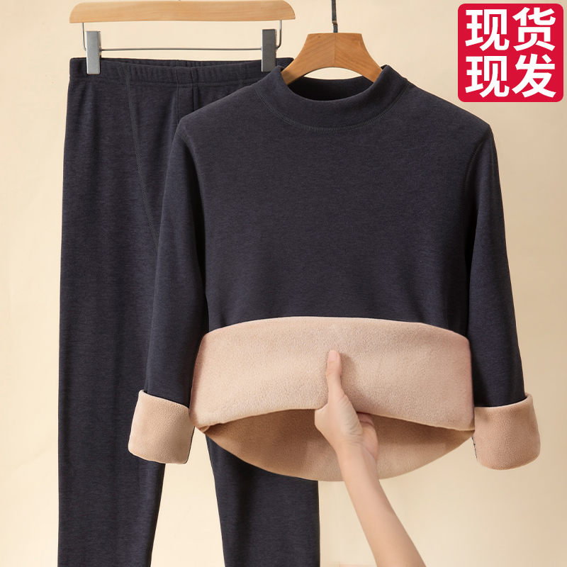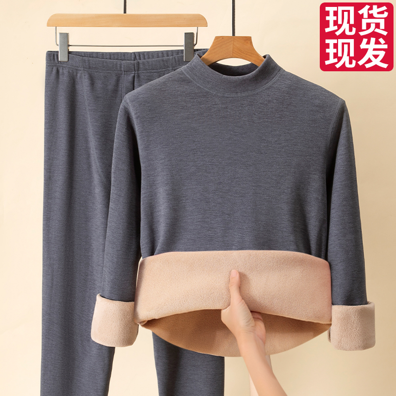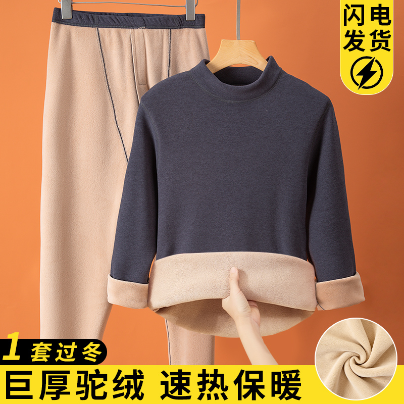 男士保暖内衣加绒加厚套装大码德绒秋衣秋裤羊羔绒打底棉毛衫大码