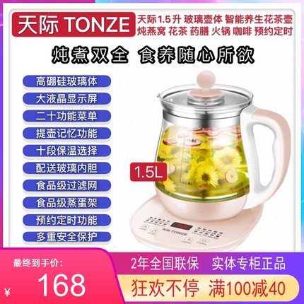天际玻璃养生壶多功能花茶壶全自动煮粥BB熬汤保健壶办公家用1.5L