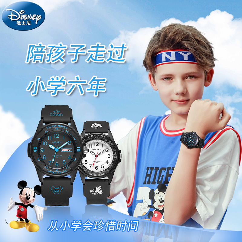 迪士尼青少年男学生运动专用机械表儿童小学生6到12岁防水电子表