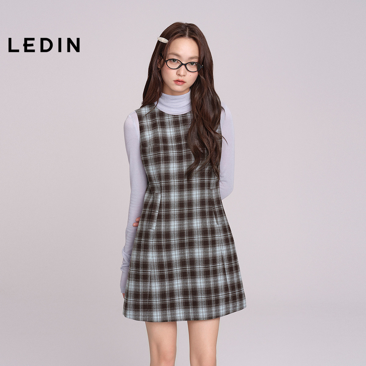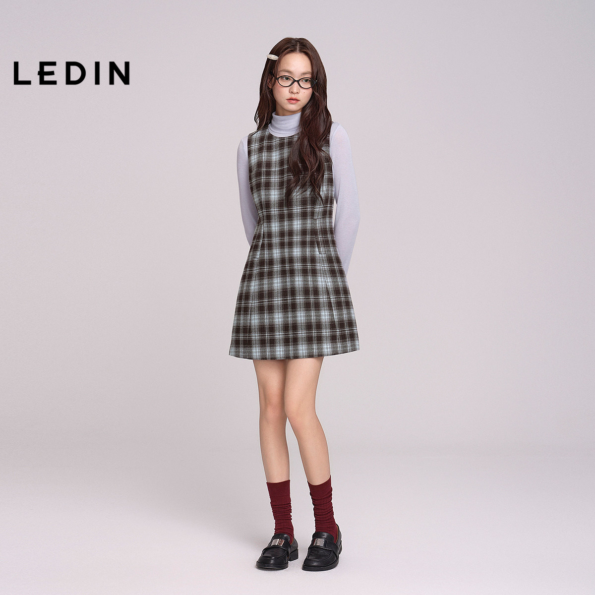 乐町磨毛格纹呢A版连衣裙女装保暖裙子C1FAF4366