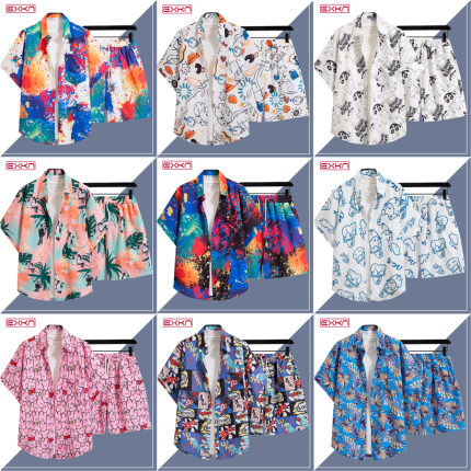 海南岛服东南亚风情套装花衬衫短袖男女同款五分袖宽松痞帅沙滩风