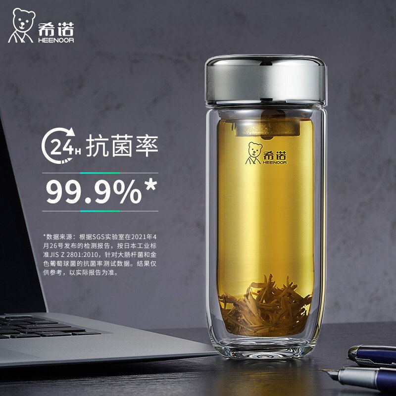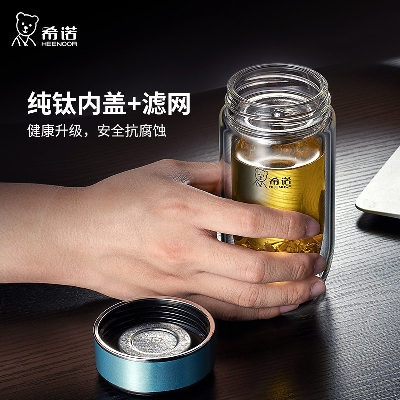 希诺双层鹅蛋玻璃杯男士抗菌隔热杯子车载便携水杯高档带滤网茶杯