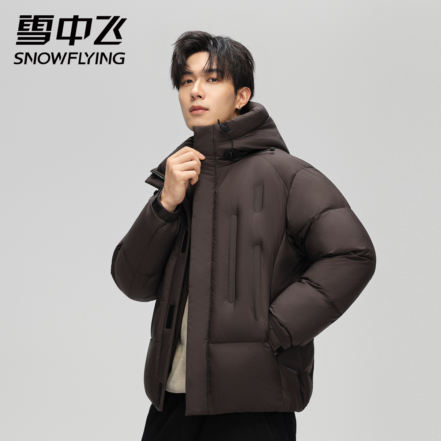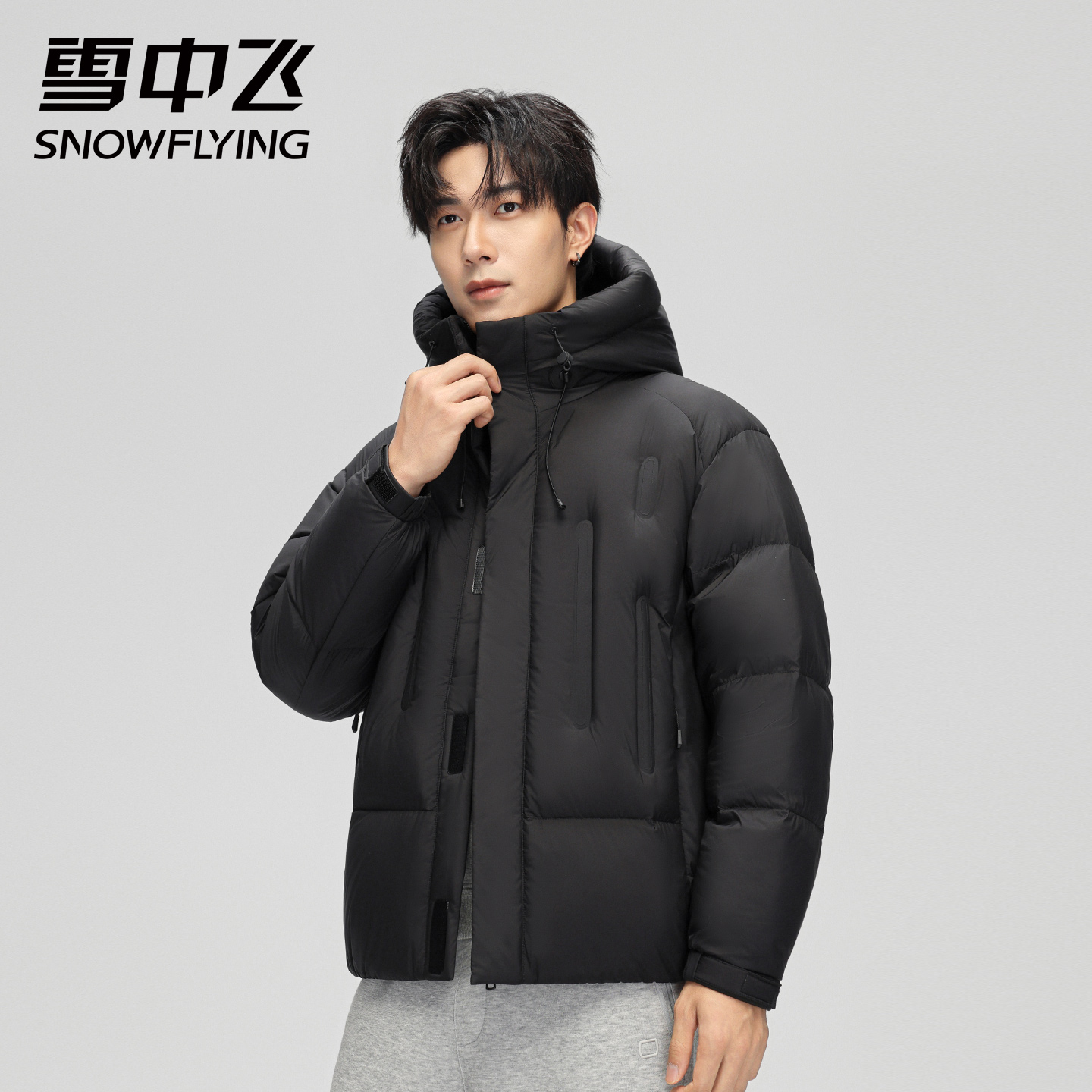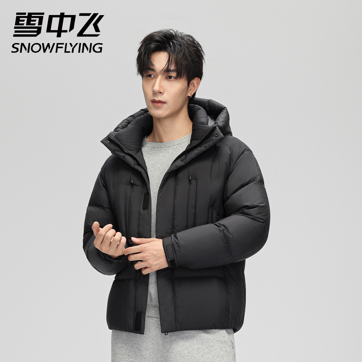 雪中飞羽绒服男冬季2025新款加厚连帽面包服短款保暖冬装鸭绒外套