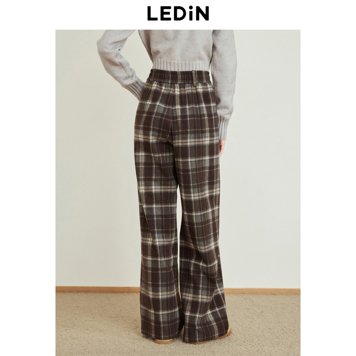 乐町磨毛格纹针织阔腿裤冬季新款复古学院宽松休闲格子直筒裤