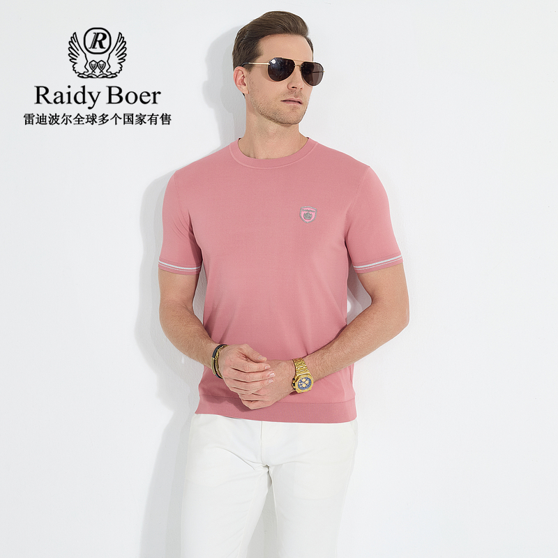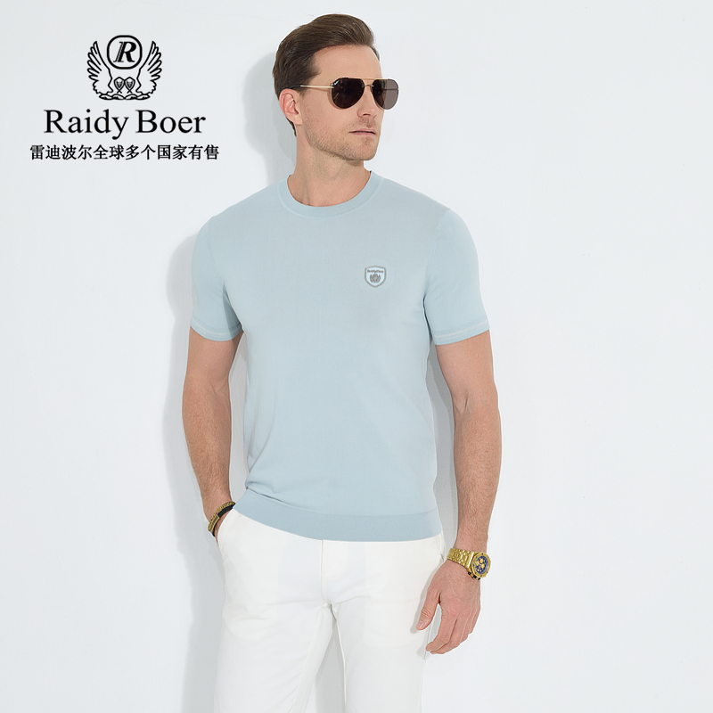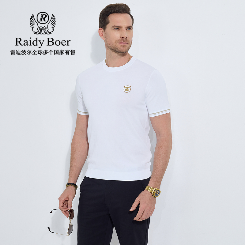 【针织弹力】Raidy Boer/雷迪波尔男2025年春胸章撞色短袖T恤7013