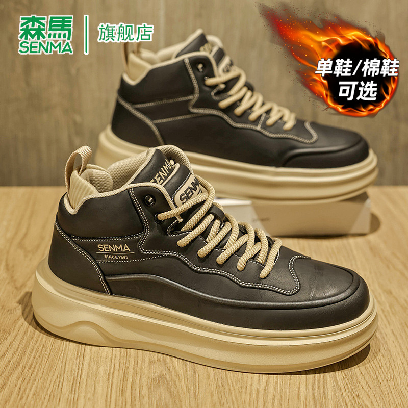 森马男鞋2025冬季新款时尚户外高帮休闲板鞋加绒加厚保暖运动潮鞋