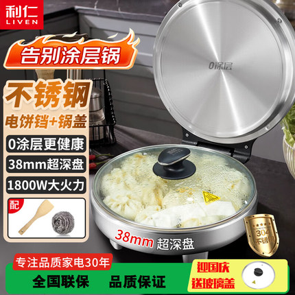 利仁不锈钢电饼铛双面加热加深小钢人大口径全自动电饼档烙饼锅