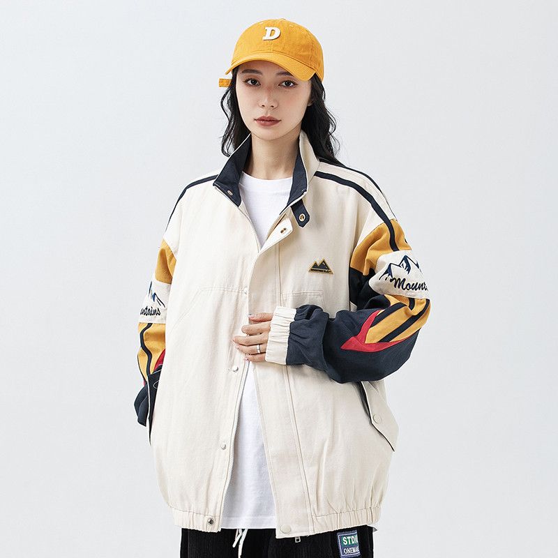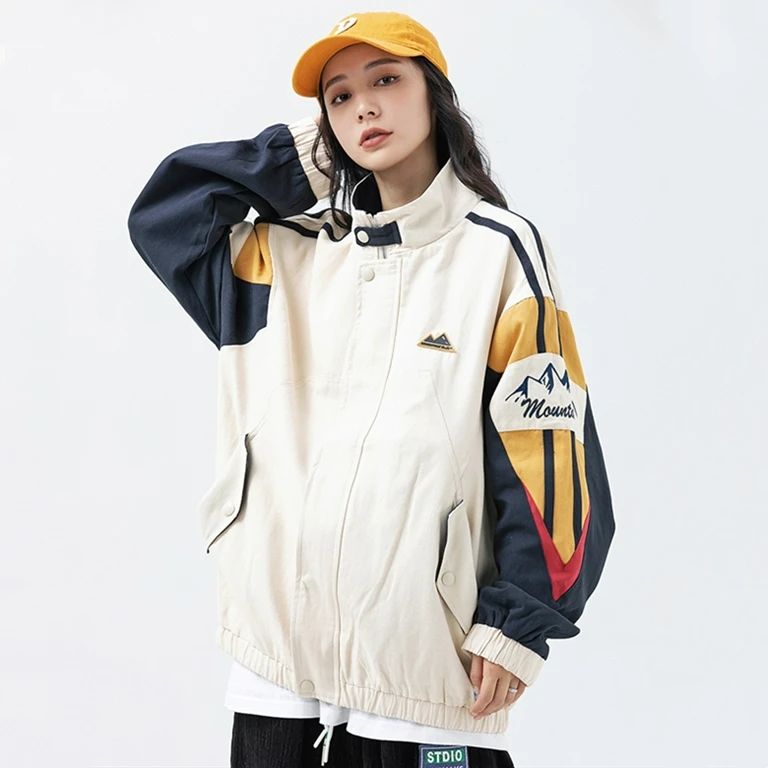 女学生实价拼接宽松棒球服外套上衣韩版百搭撞色立领夹克春秋刺绣