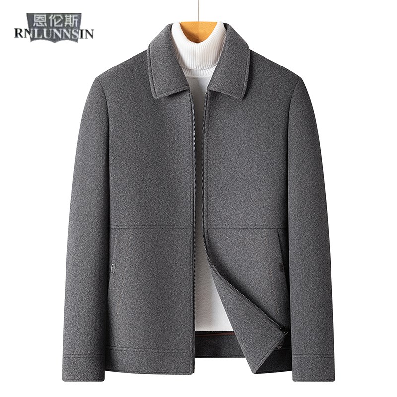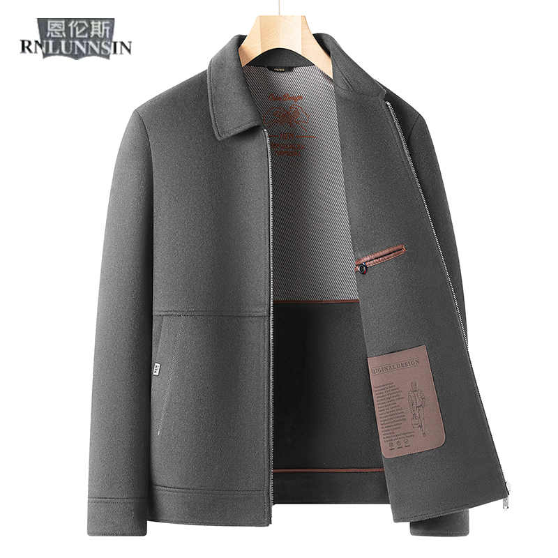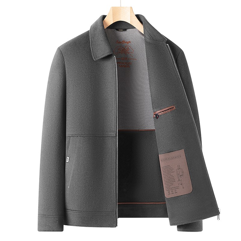 羊毛呢子外套男士短款翻领拉链款夹克男装冬季新款高端双面呢大衣