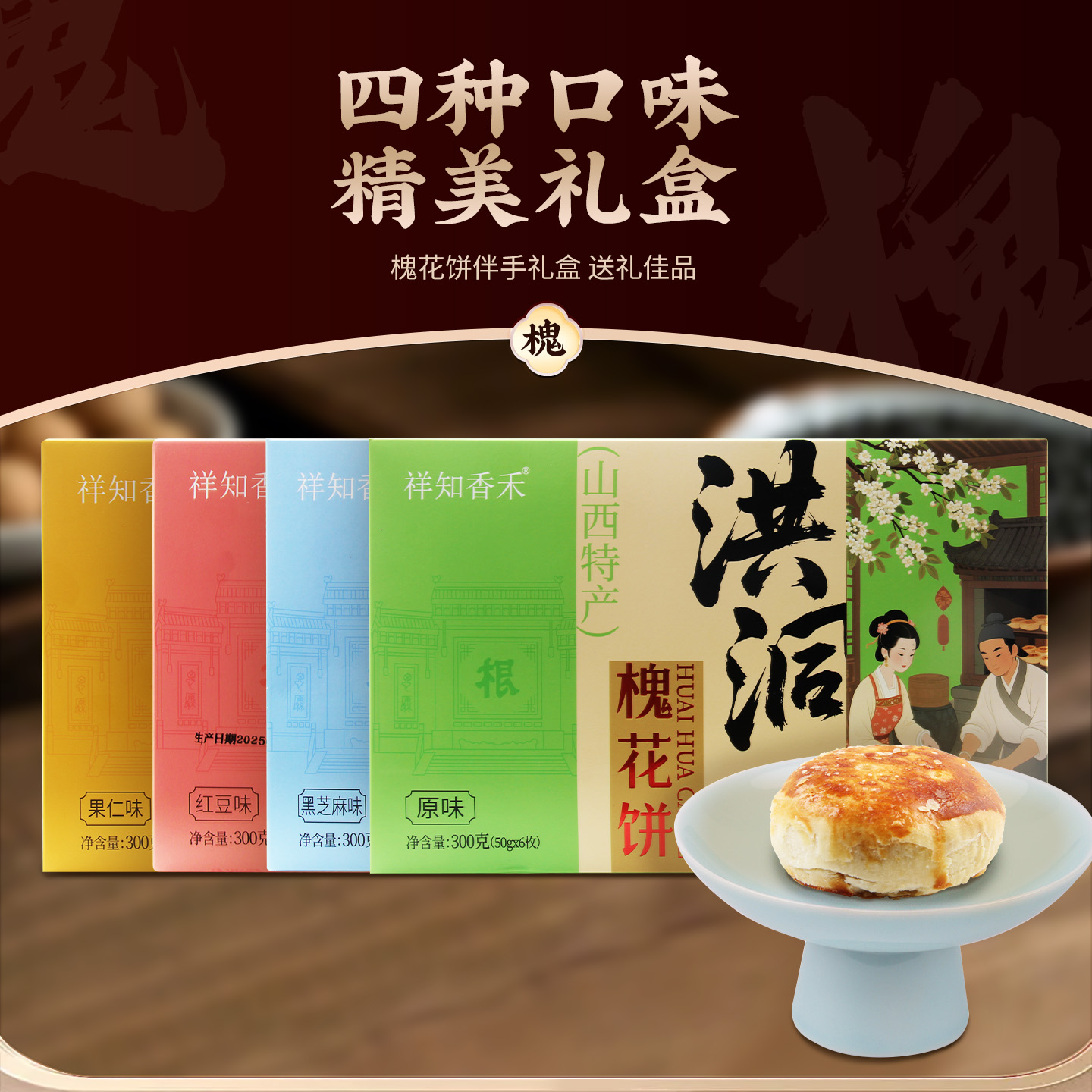 槐花饼山西洪洞原味红豆黑芝麻果仁50g*6枚盒装饼酥皮糕点心零食