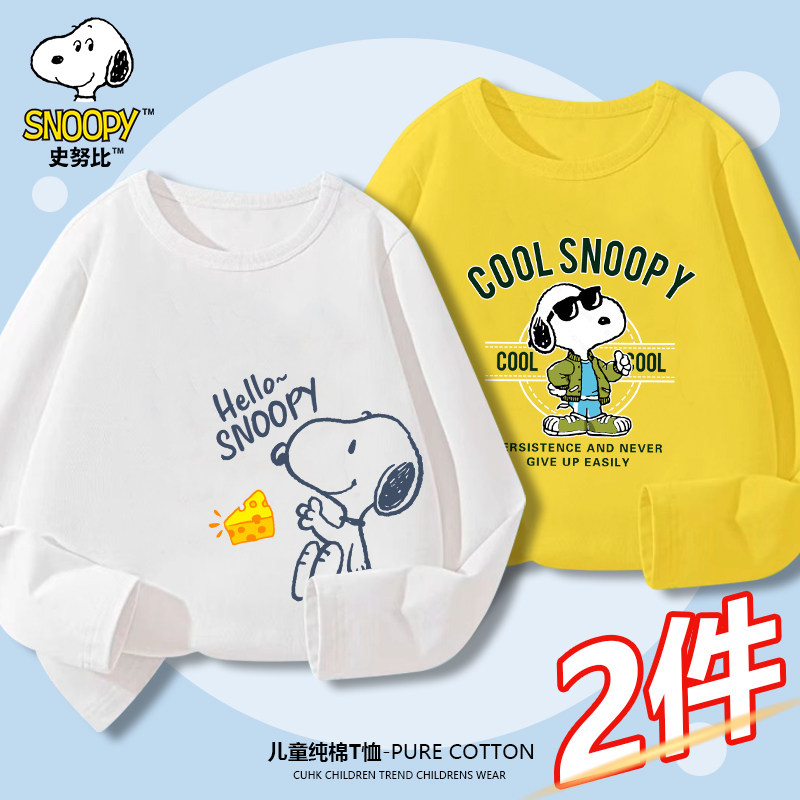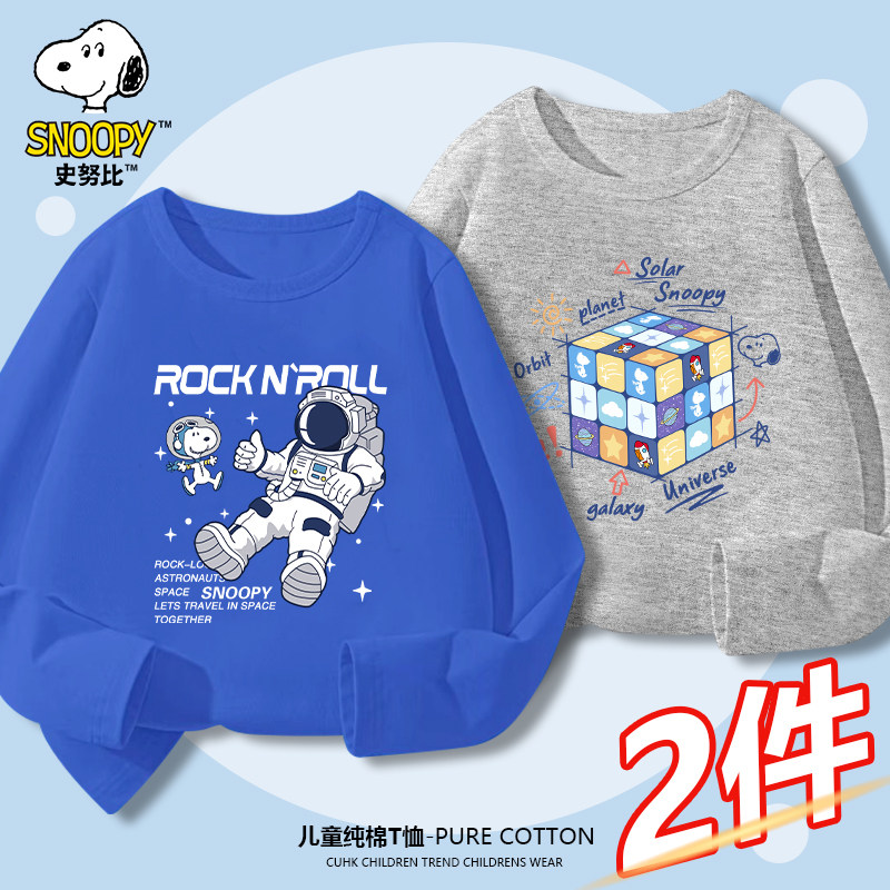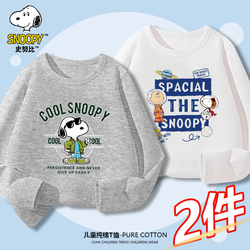 史努比童装儿童纯棉长袖T恤男童春秋新款上衣中大童打底衫春装潮