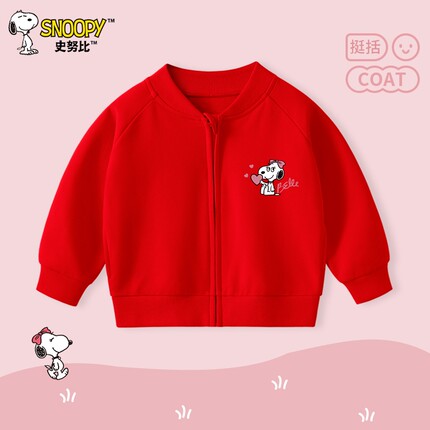 史努比宝宝外套女童上衣开衫休闲装2025新款红色衣服春秋装新年
