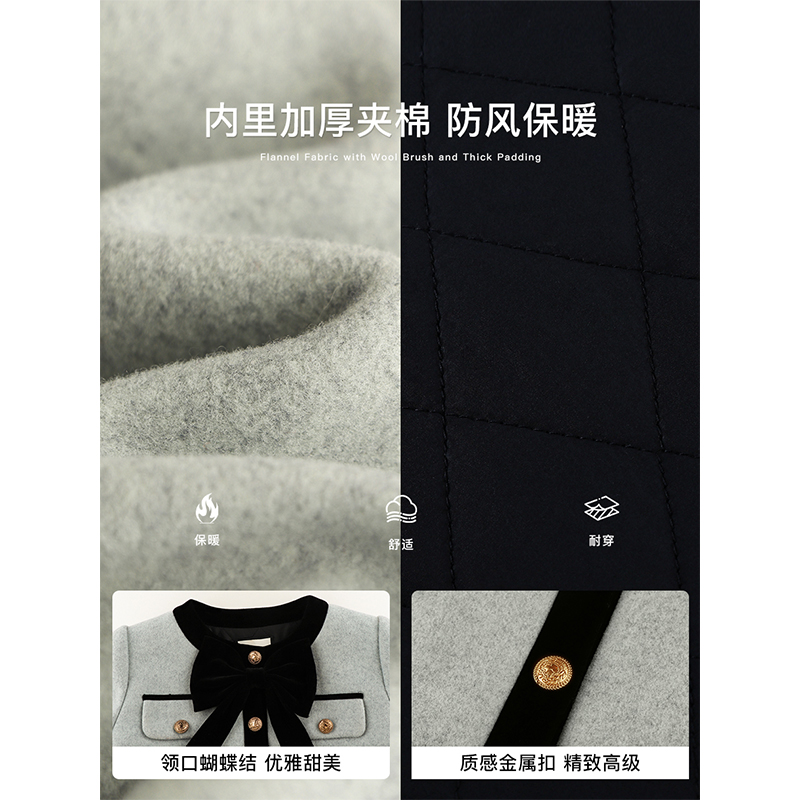 Amybaby女童上衣冬季2025新款小香风蝴蝶结夹棉保暖外套半裙套装