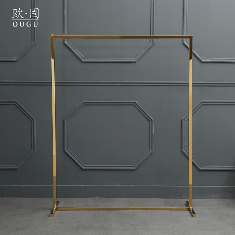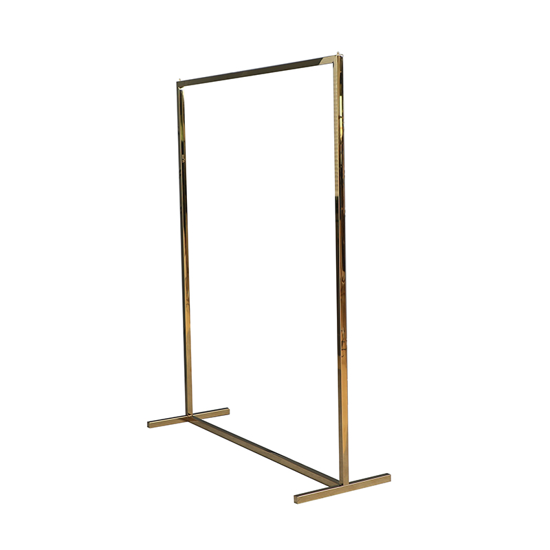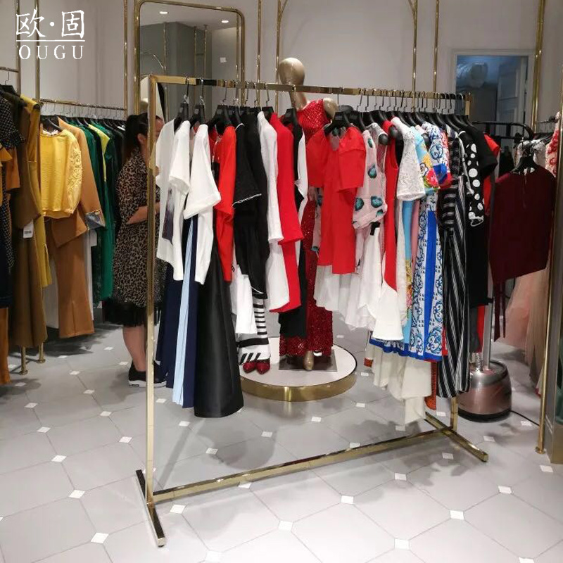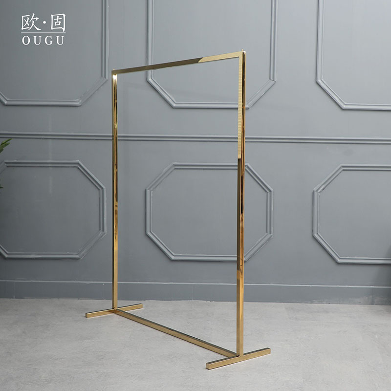 服装店衣服展示架简约单杠亮金色不锈钢定制落地式中岛陈列架货架