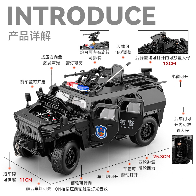 1:20大号东风猛士警车合金车模仿真装甲越野车军车汽车模型玩具车