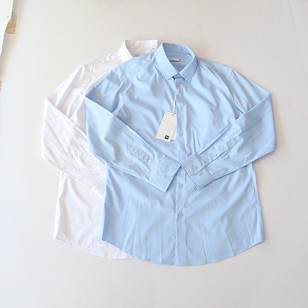 春秋季男长袖衬衫棉方领纽扣宽松休闲青年纯色简约百搭上衣H4M