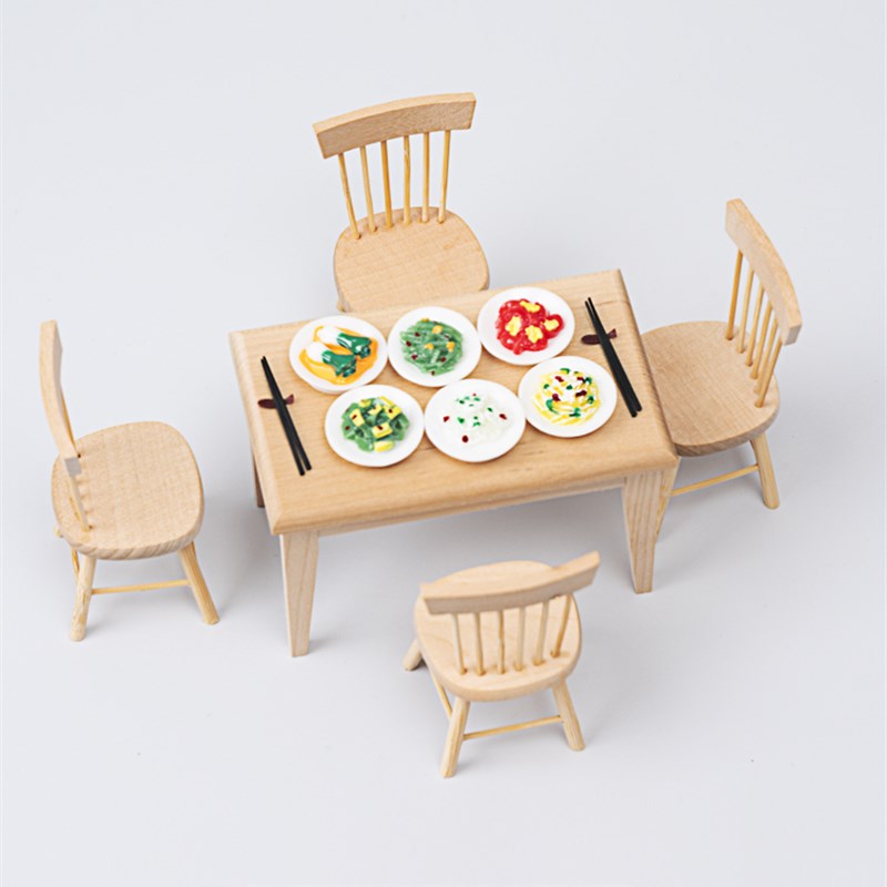 dollhouse娃娃屋配件微缩迷你仿真木质桌子椅子家具饰品摆件1:12