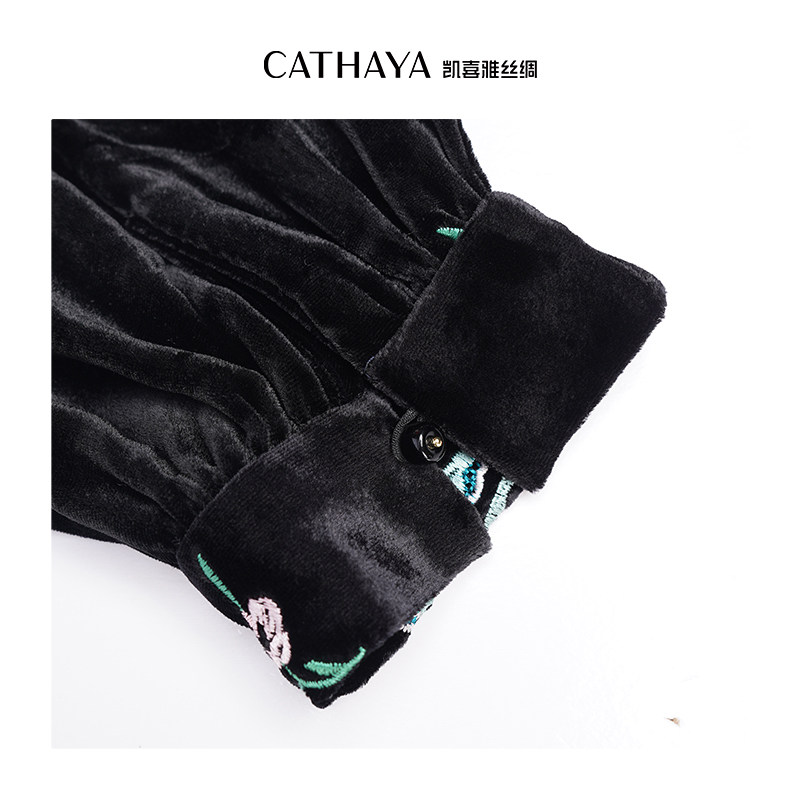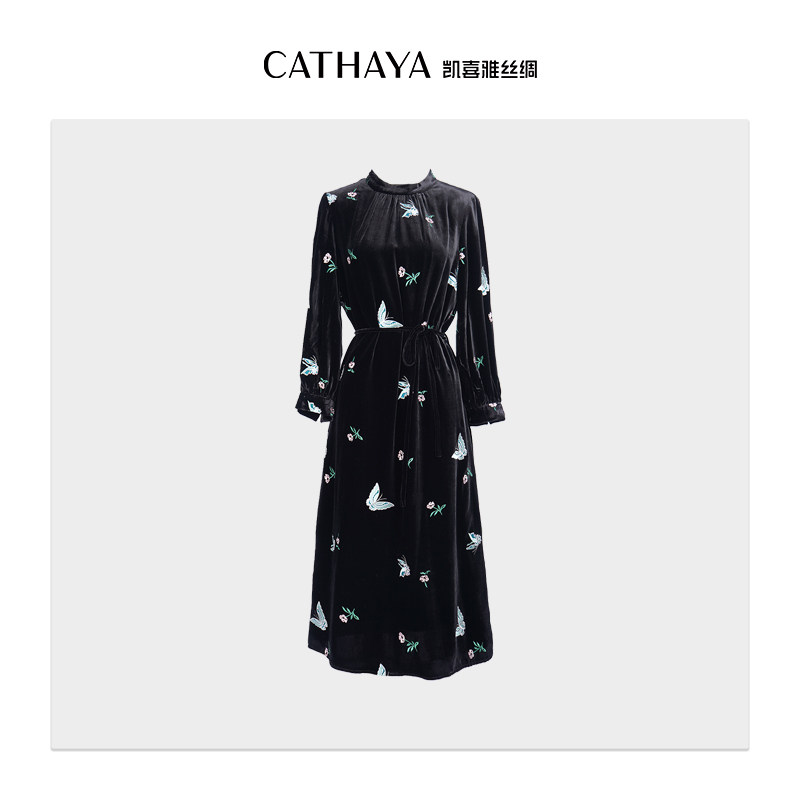 CATHAYA/凯喜雅蝴蝶丝绒连衣裙优雅精致立领真丝SZS9FLJLC21
