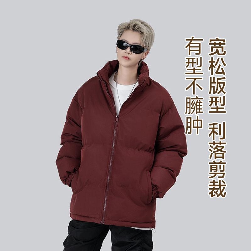 VF真维斯冬季棉服外套宽松立领棉袄面包服青年酒红新年服男款棉衣
