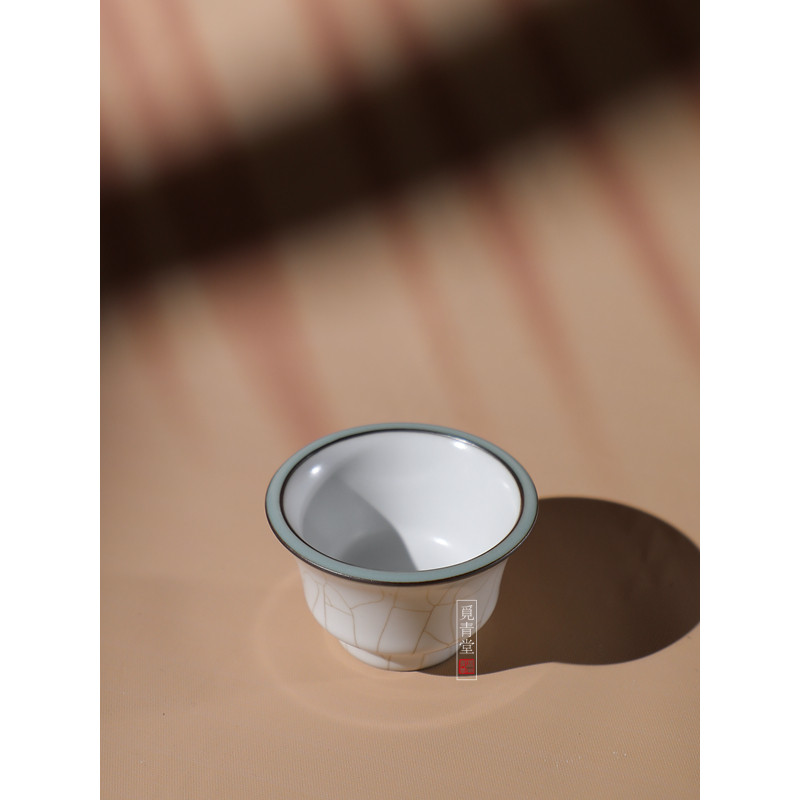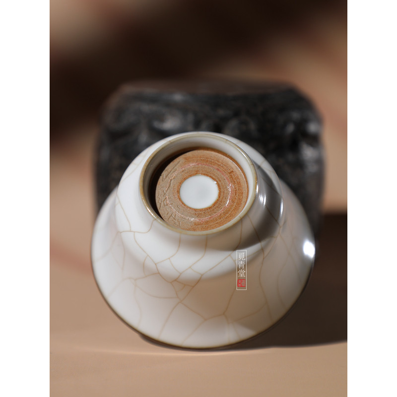 龙泉青瓷普洱茶杯许继武手工哥窑主人杯月白釉品茗岩茶高端喝茶杯