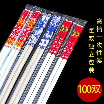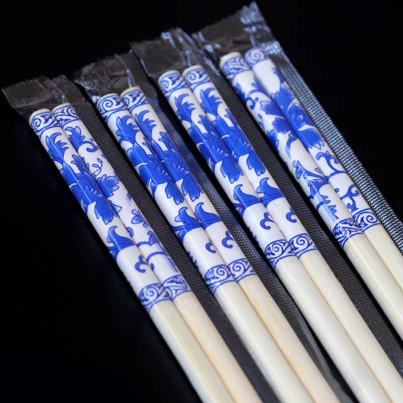 一次性筷子手工制作高档方便打包外卖竹筷酒店结婚喜庆家用青花瓷