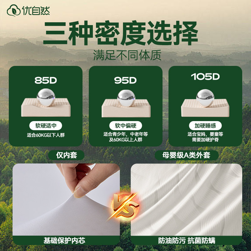优自然Y3全乳胶床垫家用卧室泰国进口纯橡胶学生宿舍软垫子可定制