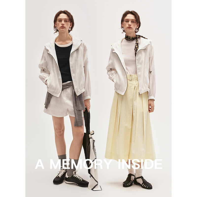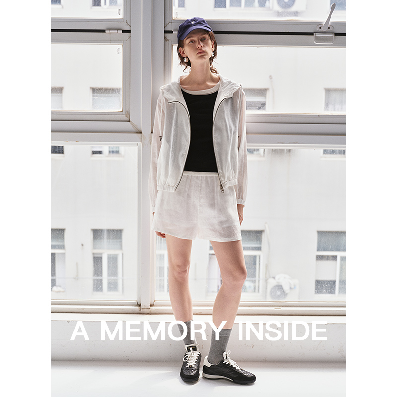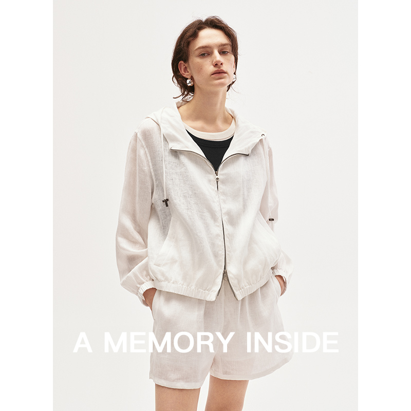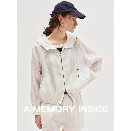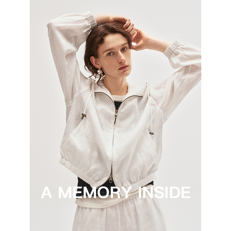 A Memory Inside高奢100%亚麻抽绳连帽短款防晒外套女夹克薄款