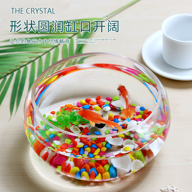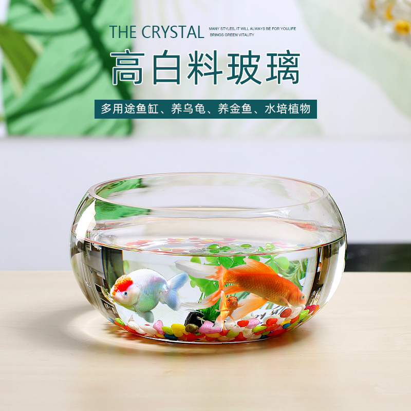 创意迷你型鼓缸透明玻璃加厚乌龟缸大号金鱼缸办公室客厅桌面摆件