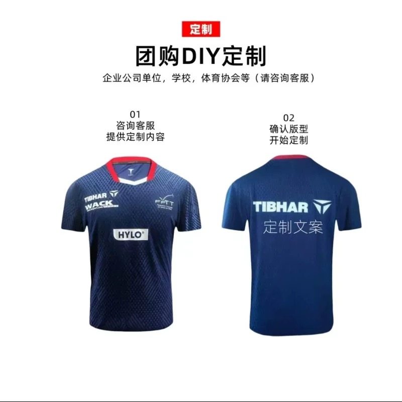 TIBHAR挺拔乒乓球服2025法国队速干乒乓球上衣训练比赛服短袖透气