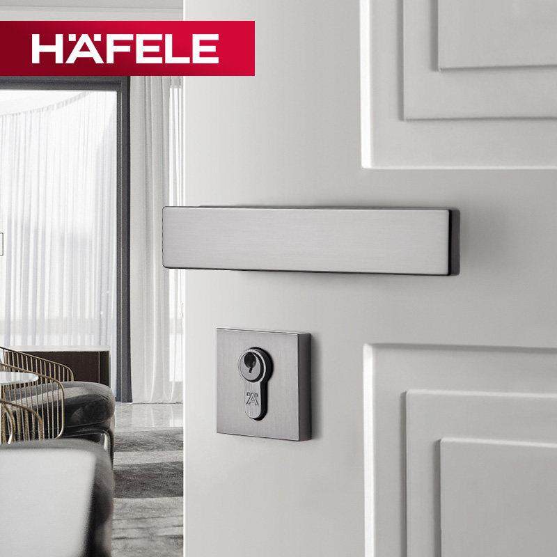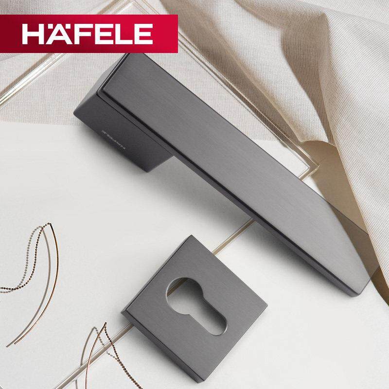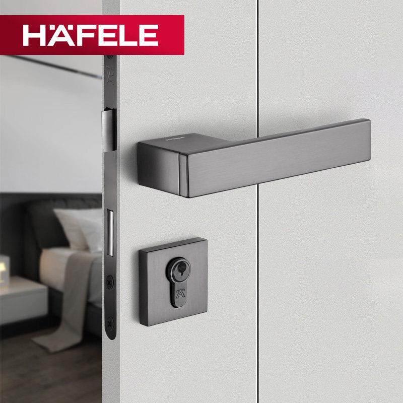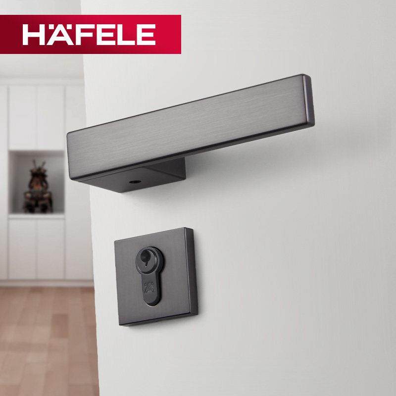 德国海福乐HAFELE卧室实木门把手黑色现代简约分体式锁具静音门锁