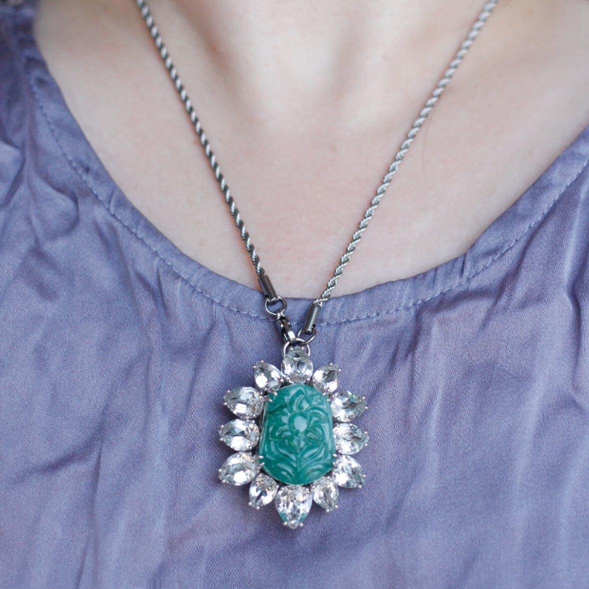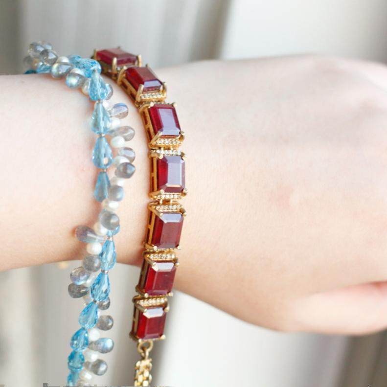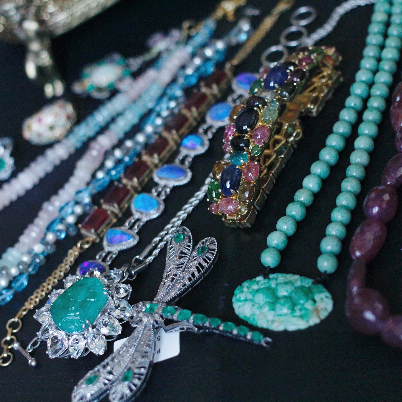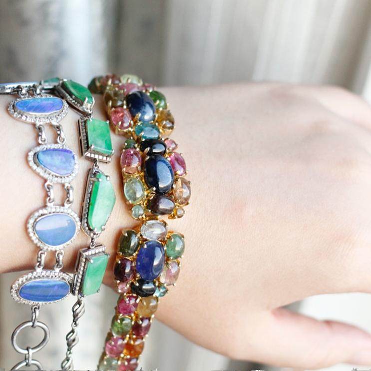 欧美艺术家925银中古A货翡翠红宝石钻石925银项链碧玺手链vintage